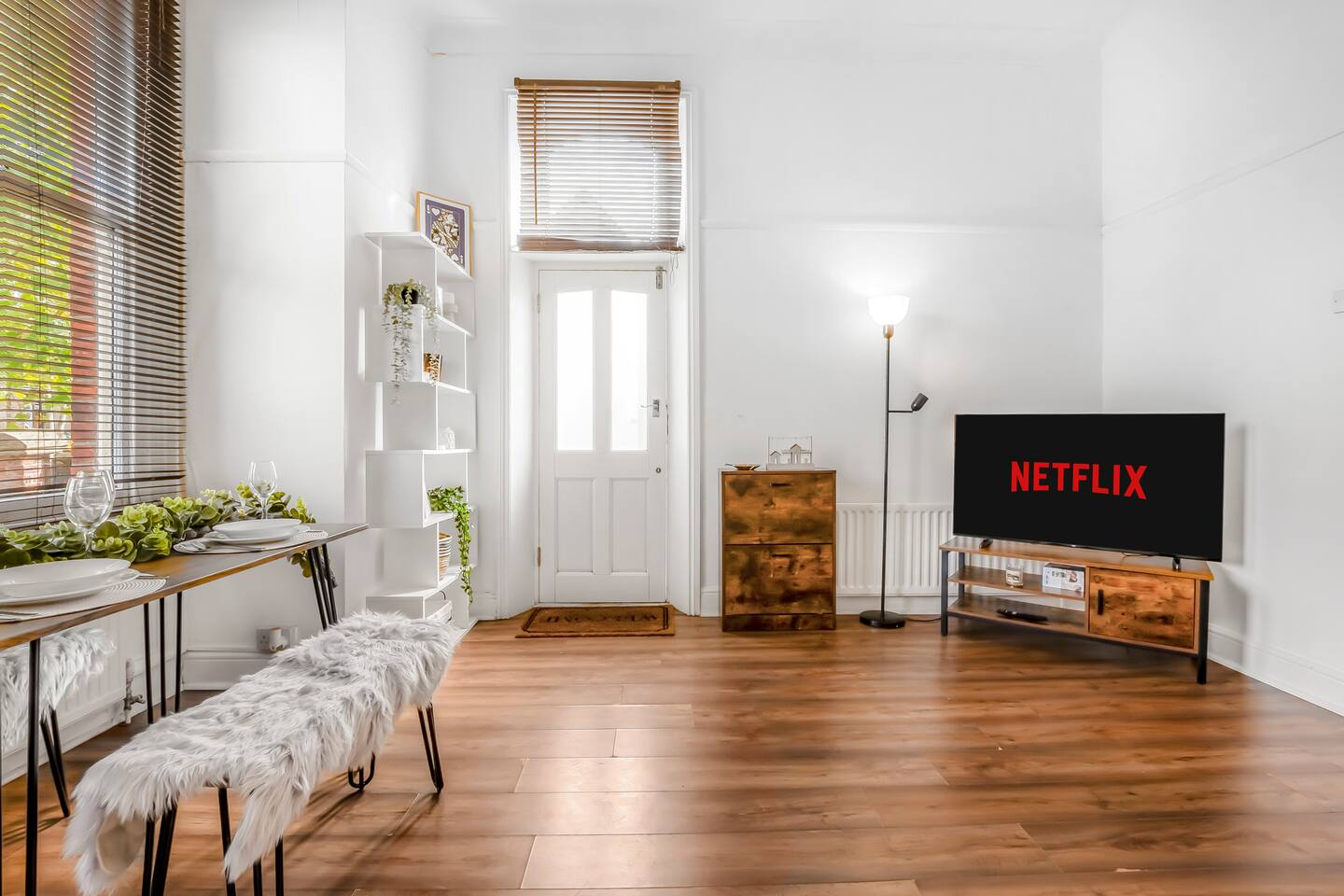 Guests will have full and exclusive use of the entire 1-bedroom flat, including the private entrance, living room with Smart TV, kitchen, bathroom, and bedroom. You’ll also have sole access to the private terrace at the side of the property, as well as free shared parking at the front and sides of the property building . No other areas are shared with other residents during your stay.